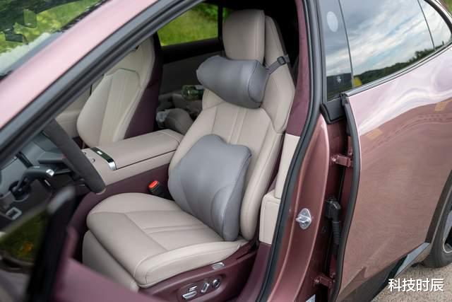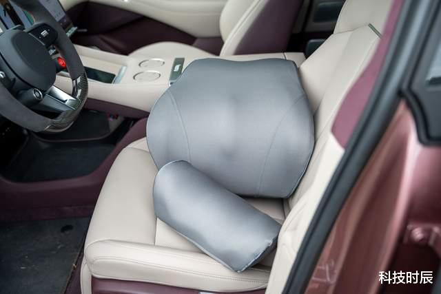 但是我要说的是,小米YU7这个车前排座椅的坐垫长度还是太短了,如果是放在后排使用,舒适度会更高。因为它的坐垫长度短,所以腰靠支撑了之后,整个腿部会更向前,那腿部的悬空空间会增大,这一点大家要注意。