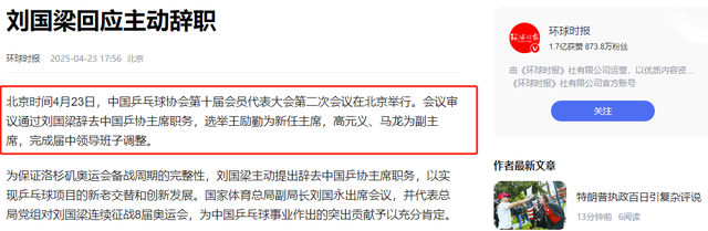 信息来源:环球时报 2025-04-23 刘国梁回应主动辞职