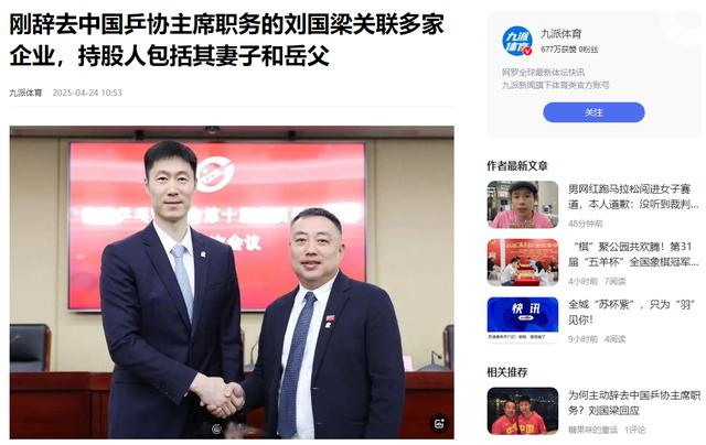 信息来源:九派体育 2025-04-24 刚辞去中国乒协主席职务的刘国梁关联多家企业,持股人包括其妻子和岳父