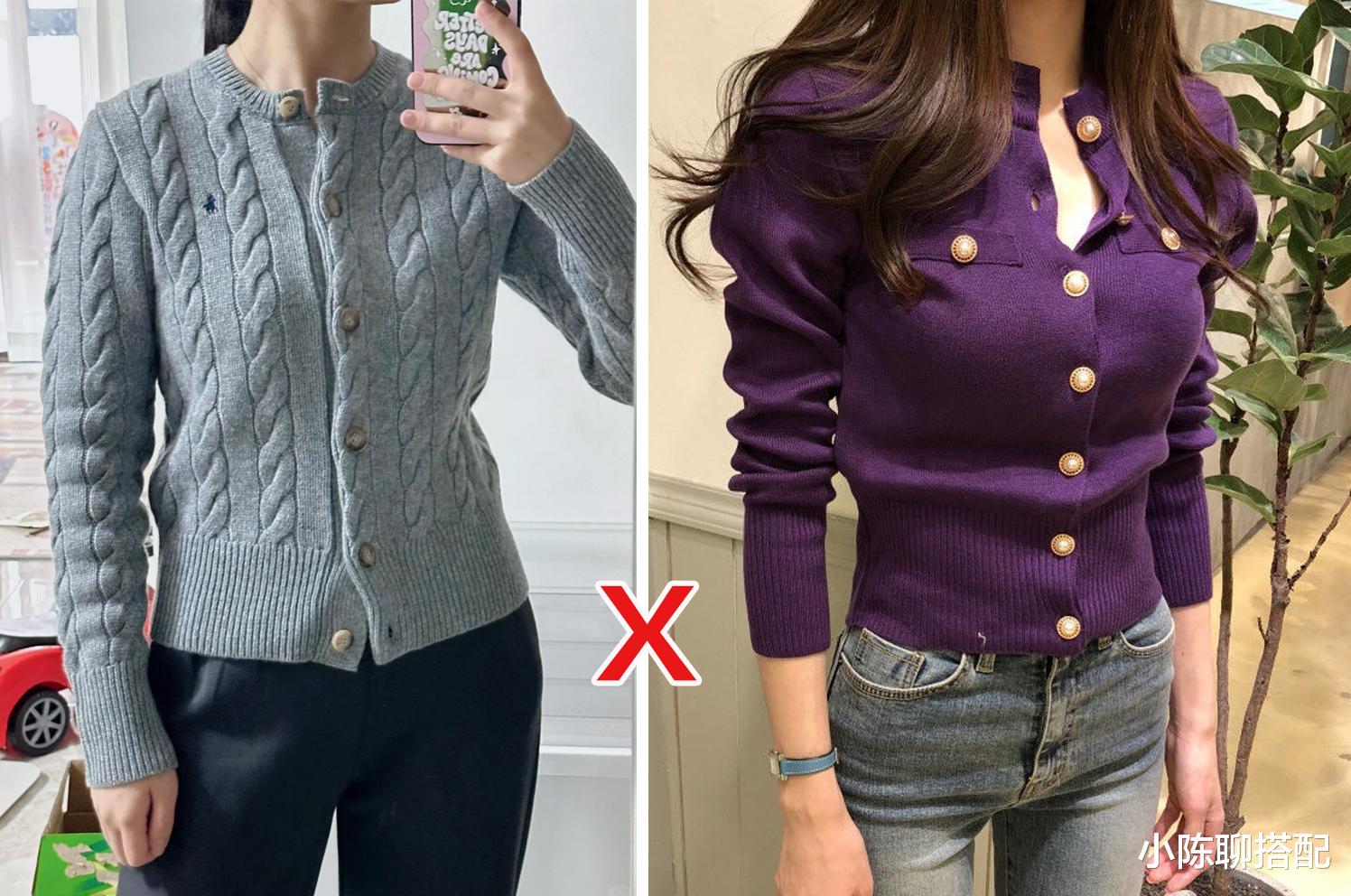 如果你不慎选择了这类款式的“奶奶衫”?基本可以说很大概率你很难将它穿出彩来。因为它们就是“显老显大妈感”的罪魁祸首。挑身材,挑气质,面料还透着一股廉价感,谁来穿都是“翻车”。