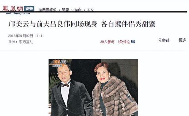 邝美云与前夫吕良伟同场现身 各自携伴侣秀甜蜜_娱乐频道_凤凰网