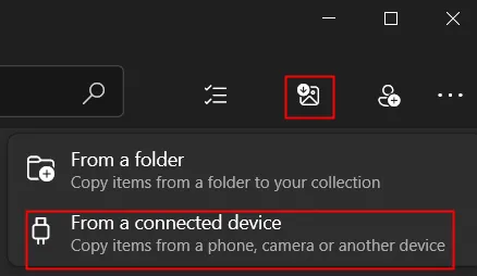 选择“从连接的设备”,并从列表中选择你的 iPad。该应用程序将扫描你的设备以查找新照片。选择要传输的照片,然后点击“导入”,将它们复制到电脑上的文件夹中。