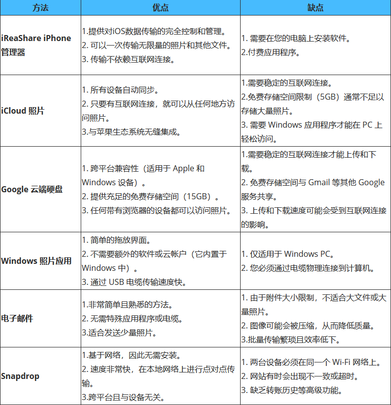 验证照片是否已成功复制,然后从 iPad 中删除照片。 考虑在 iCloud 设置中使用“优化 iPad 存储”。结论您无需使用 iTunes 即可将照片从 iPad 传输到电脑。无论您是喜欢使用iReaShare iPhone Manager等专用工具在电脑上传输、备份、恢复和管理 iOS 数据,还是使用 iCloud 和 Google Drive 等云端解决方案,总有一款适合您。