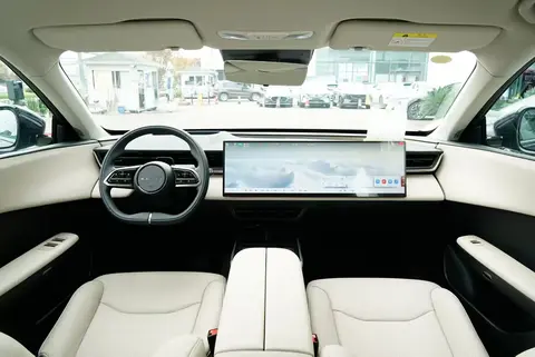 拉开车门,可以看到车内尤为显眼的肯定是那块26.45英寸的5K一体式大屏,屏占比达到88.3%,机身厚度只有9.5毫米,看着很轻薄。这块屏幕可不是随便做的,经过了900小时零下40度到95度的循环冲击测试,还有1000小时的常温稳定性测试,就是为了在各种极端天气下都能正常工作,毕竟车要开好几年,屏幕耐用性很重要。给这块屏幕和整个智能座舱提供算力的,是一颗4nm车规级芯片(联发科MT8676),比起之前常见的7nm芯片,晶体管密度提升了约1.6到1.8倍,同样的功耗下,算力能提升25%到40%。带来的直接感受就是,语音指令响应特别快,只要39毫秒,差不多就是你说完话,车马上就有反应;复杂对话的准确率也提高了55%,比如你说“先把空调调到24度,再打开遮阳帘”,它也能听懂,不用一句一句说。另一个亮点是100英寸的裸眼3D HUD(抬头显示)。它用了双目成像原理和眼球追踪技术,导航箭头能和真实道路重合,开车的时候不用低头看屏幕,余光扫一眼就能知道该往哪拐,减少分心。停车休息的时候,这个HUD还能变身为小型3D影院,配合线上影视库的500多部3D片源,偶尔在车里等个人也不会觉得无聊。智能交互的“大脑”里装了豆包和讯飞星火两个AI大模型,这意味着你可以用更自然的方式跟车对话,比如随口说句“我有点冷”,车就知道把空调开热点;甚至可以指着遮阳帘或车窗说“打开这个”,它也能精准执行。官方说,超过1700项车辆功能都能通过AI语音助手调用,基本不用动手操作了。音响方面,这款车装了23个高品质扬声器,支持杜比全景声,还带空间声场校准技术,不管坐在前排还是后排,听着都清楚,音质也不错。