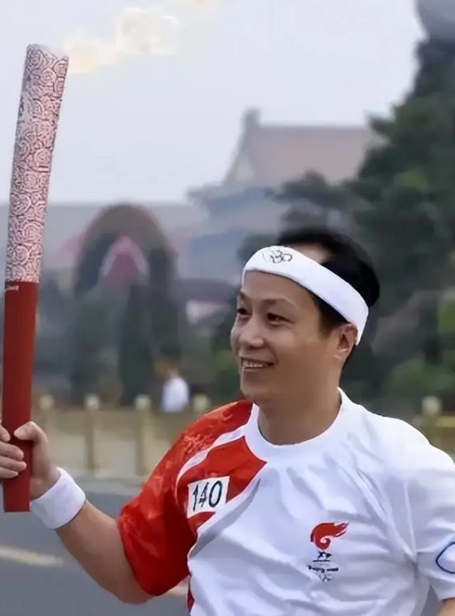 2008 年 8 月 6 日,他忍着身体的疼痛,面带微笑地出现在奥运火炬传递的现场。