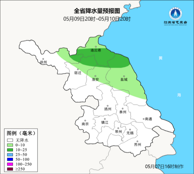 5月8日20时至5月9日20时,8日夜里全省阴有阵雨或雷雨,其中本省东部地区大雨,部分地区暴雨,其他地区中雨;9日白天淮北北部地区阴有阵雨或雷雨,其他地区阴有小雨并渐止转多云。最高温度:本省东北部地区19~20℃,其他地区23~24℃;最低温度:苏南地区19℃左右,其他地区15~16℃。淮河以南地区偏东风转偏西风,风力都是5-6级阵风7-8级,其他地区偏东风转偏北风,风力都是5-6级阵风7级,有雷雨地区雷雨时短时阵风8-9级。