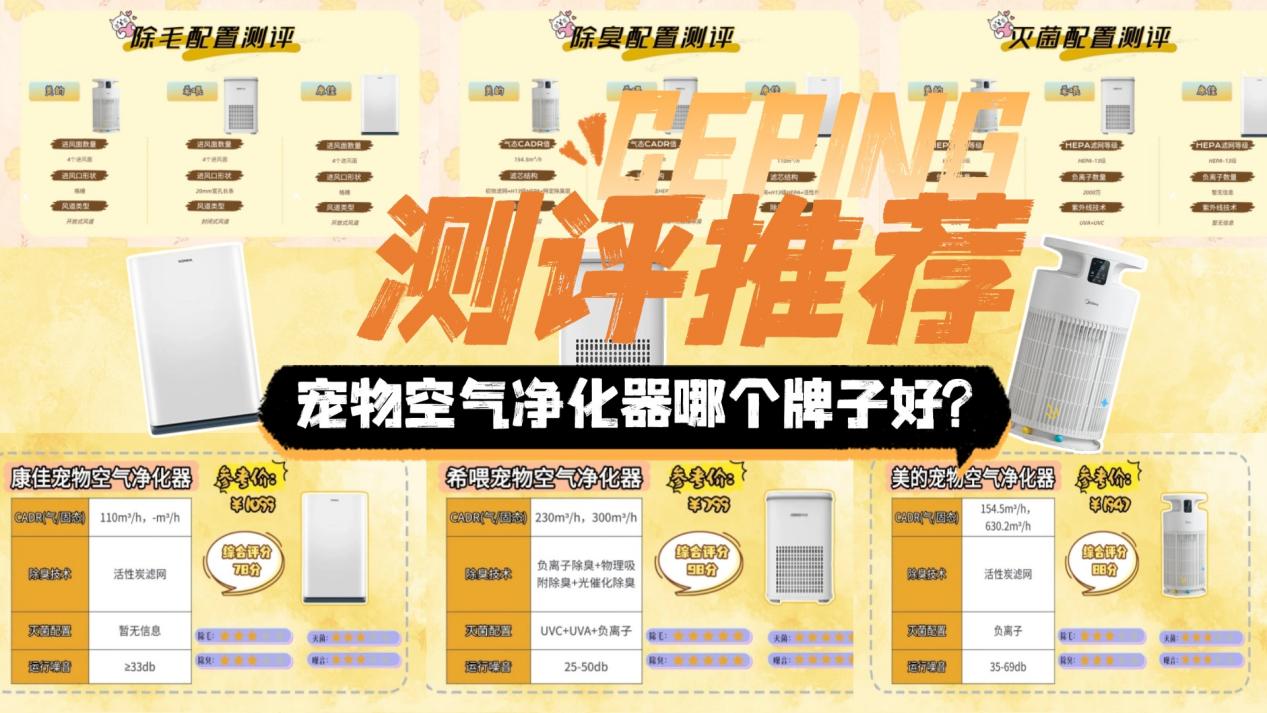 也正因为这些现实困扰,宠物空气净化器哪个牌子好? 成了养宠家庭反复搜索的问题。但市面上不少产品只是普通空气净化器的延伸款,参数看起来很“满”,实际针对宠物场景的优化却有限。为了避免被宣传话术误导,这次选取了希喂、康佳和美的三款热度较高的机型,在统一维度进行横向测评,从除毛、除味和灭菌三个核心能力展开对比,希望能为“宠物空气净化器哪个牌子好?”这个问题,提供一个更贴近真实使用场景的判断依据。