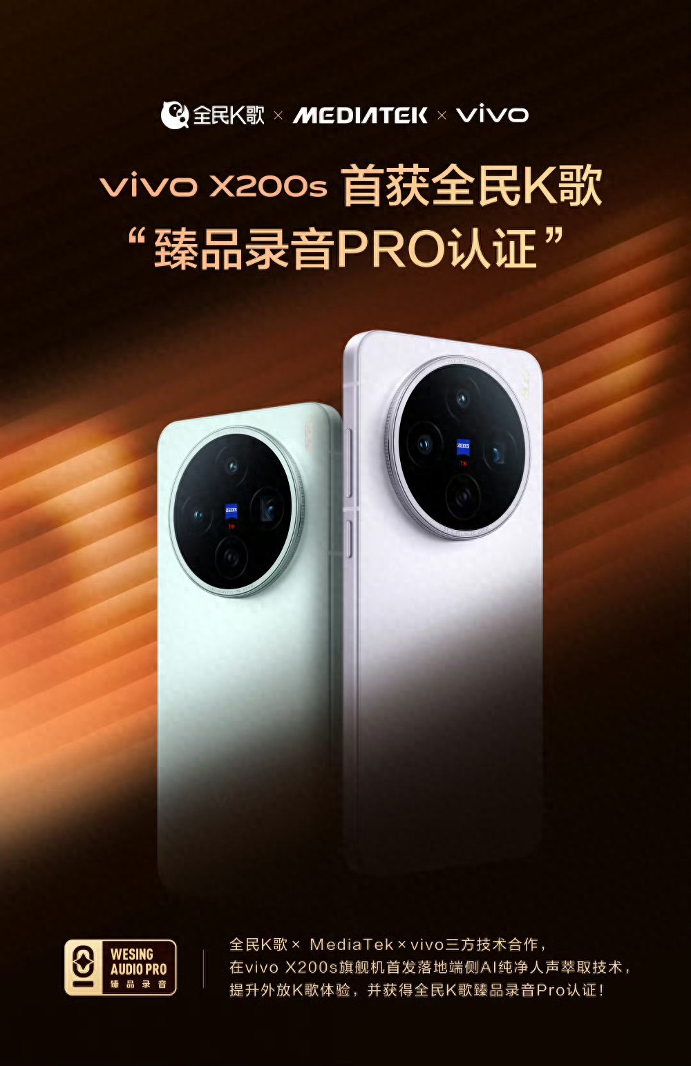 先说这个让K歌党狂喜的杀手锏,全球首个端侧AI纯净人声萃取技术!这可不是普通降噪,据说连地铁站里唱歌都能把环境音过滤得干干净净,配上全民K歌的臻品录音Pro认证,以后随时开嗓都能录出录音棚质感。朋友聚会不用抢麦,直接拿手机当移动KTV,这波操作真的绝了!