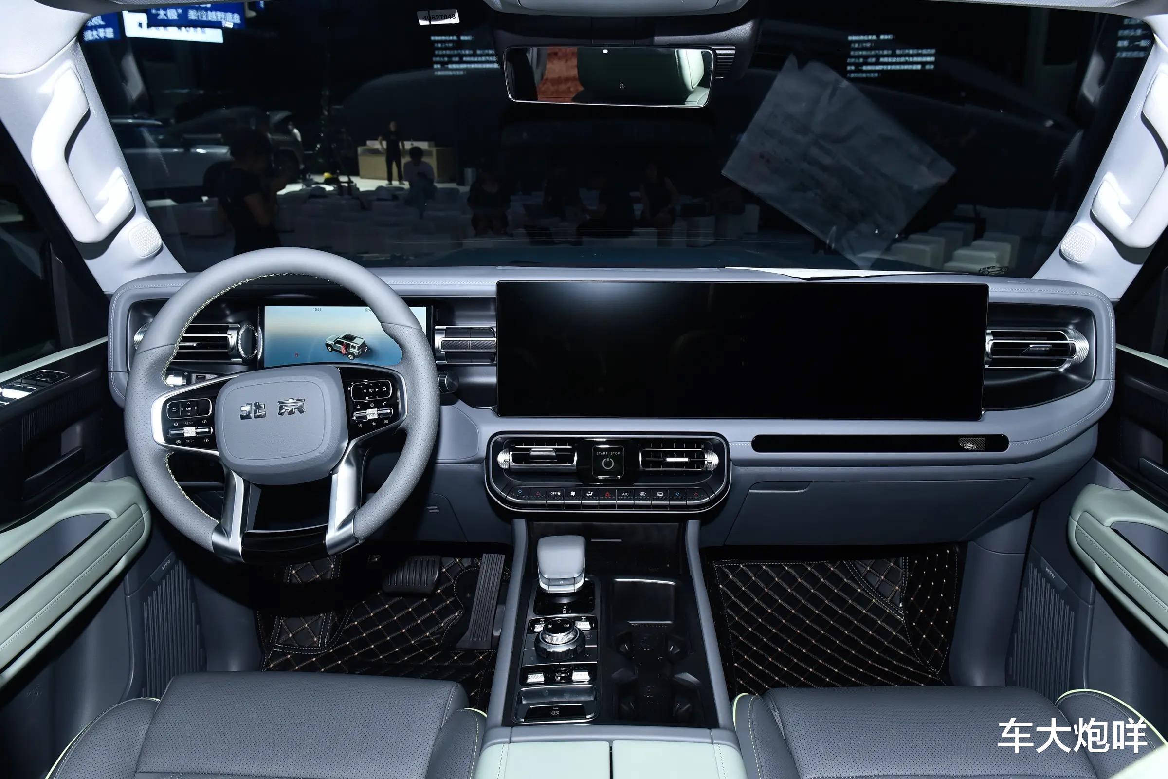 内饰方面,北京BJ40魔核电驱版搭载圆形多功能方向盘和10.25英寸嵌入式液晶仪表,12.8英寸中控屏与12.8英寸副驾驶娱乐屏依旧采用双联屏形式,车机系统由高通骁龙8155芯片提供支持。