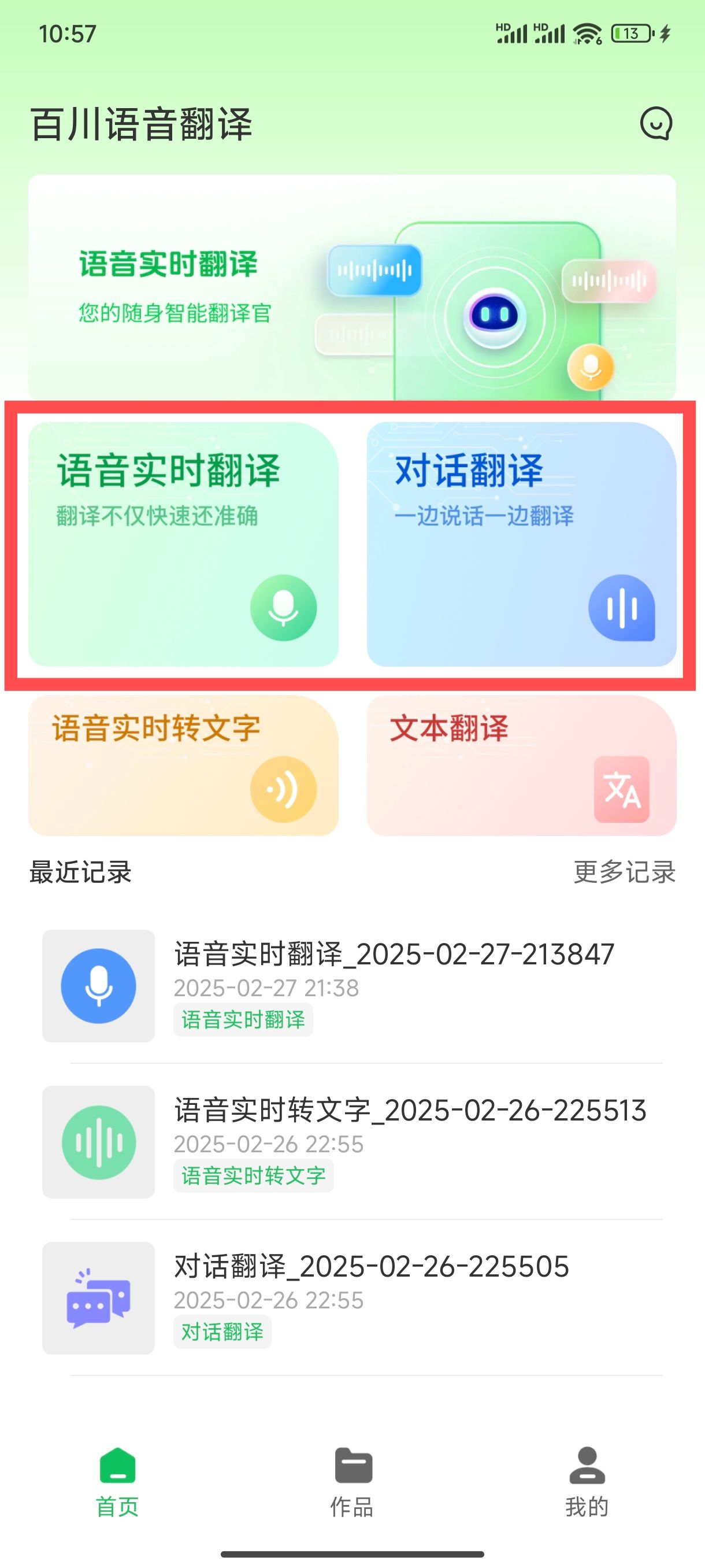 百川语音翻译来啦!实时翻译上百种语言,旅行、学习好帮手,轻松沟通无障碍,让你的话语跨越山海,通达世界每个角落~✨