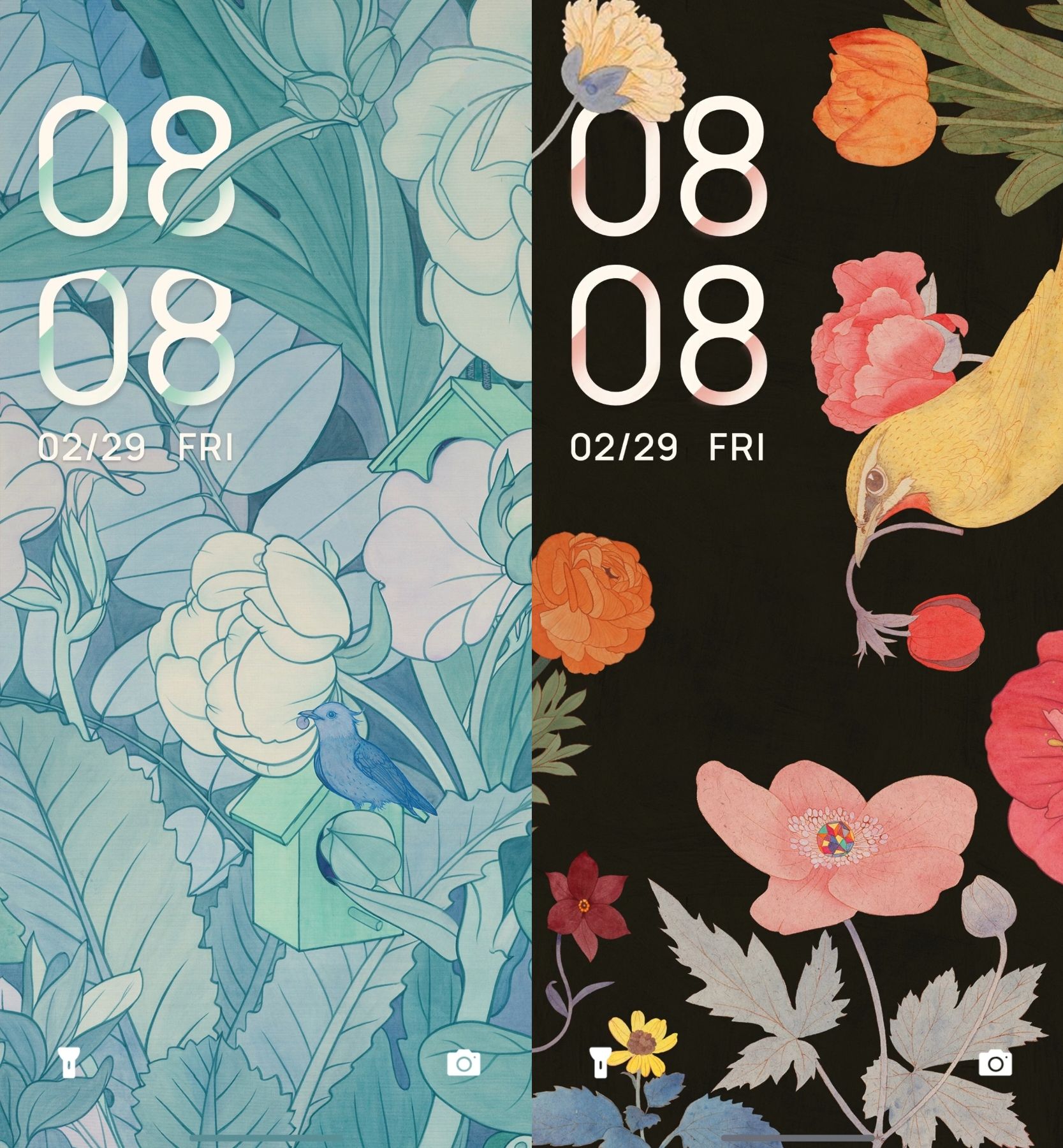 而在“年度会员主题”中,我比较喜欢《花有约》——以花为媒的画面里,绚烂花卉交织出细腻质感,自带静谧又热烈的艺术氛围,还支持上下滑动解锁、双击切换壁纸的实用互动,喜欢的朋友都可以试试~
