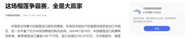 值得一提的是,泰国那边就坐不住了,立马对榴莲质量进行管控,多个地区停止出口,还要给中国出口检测报告,试图要挽回局面。