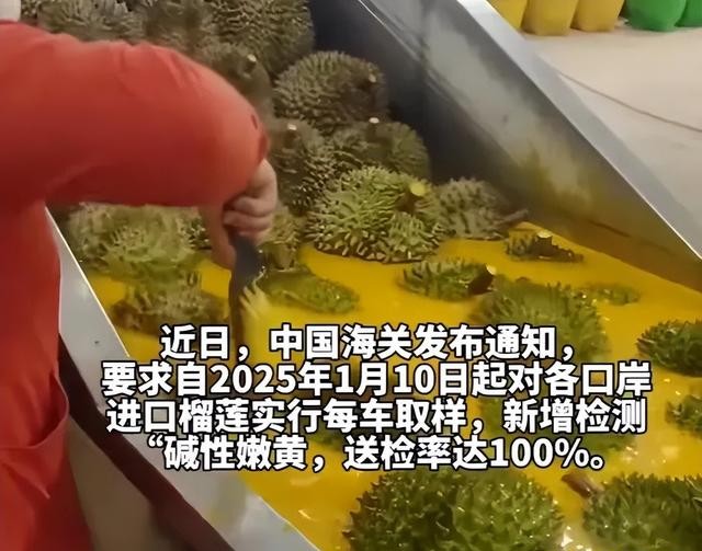 2025年1月10日,中国开始对进口的泰国榴莲严格抽查把控,这只源于早在之前,泰国榴莲在过海关时,被工作人员检查出“碱性嫩黄”。