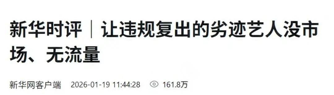 新华社直接发文点名:《让违规复出的劣迹艺人没市场、无流量》。