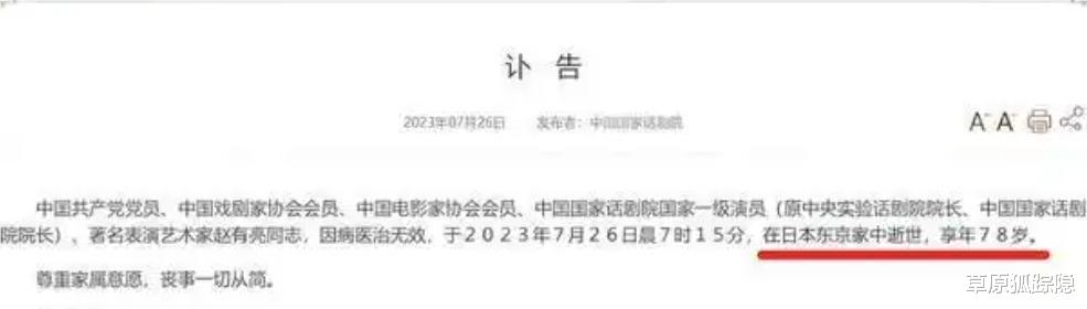 同样在2023年,中国国家话剧院首任院长赵有亮先生也离世于日本。他与日本有着深厚的渊源,他的妻子是日本人。或许,在人生的最后阶段,他的身边有爱人陪伴,也算是一种慰藉吧。
