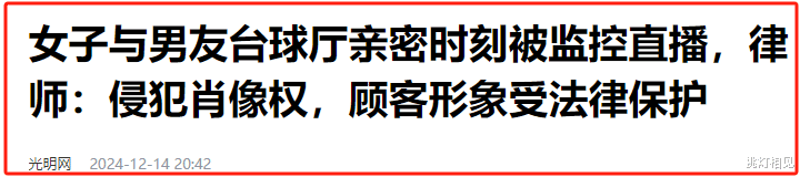 近日,一则关于“情侣在台球厅亲密时刻被监控直播”的新闻在网络上引起了轩然大波。