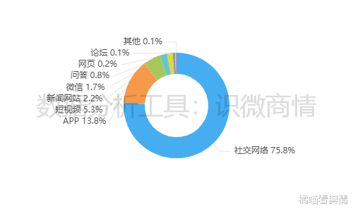 该时段内,有关“携程误发全员离职信息事件”的舆情主要集中在社交网络平台,约占总量的75.8%,其次为新闻APP(约占13.8%),短视频(约占5.3%)。