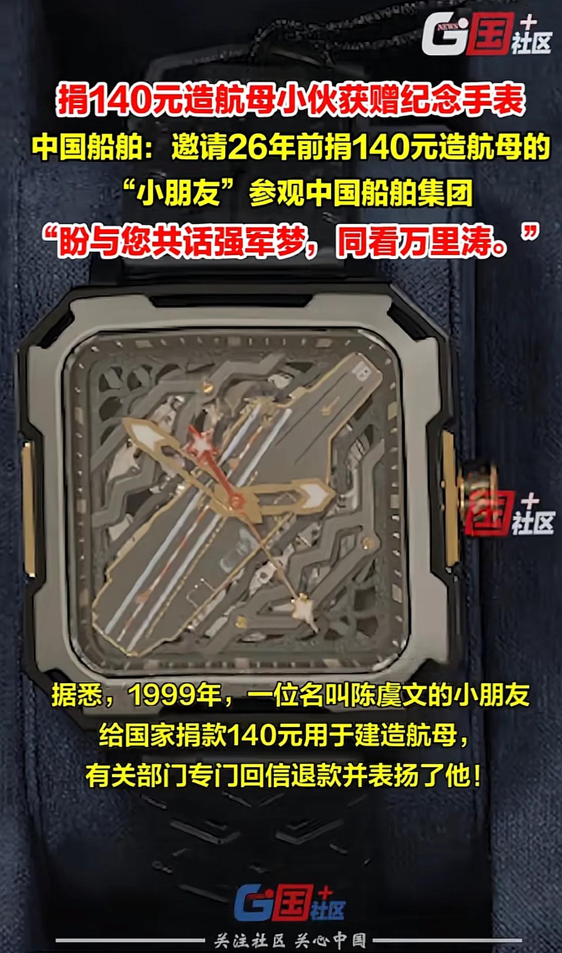 在当今这个时代,当大多数人都沉浸在个人的小世界里,为生活的琐碎奔波忙碌时,却有这么一位普通得不能再普通的小伙,以一种看似“不普通”的方式,闯入了大众的视野,书写了一段令人惊叹的传奇——他因捐款助力航母建造,竟意外获赠福建舰手表,开启了一段与大国重器紧密相连的奇妙缘分。
