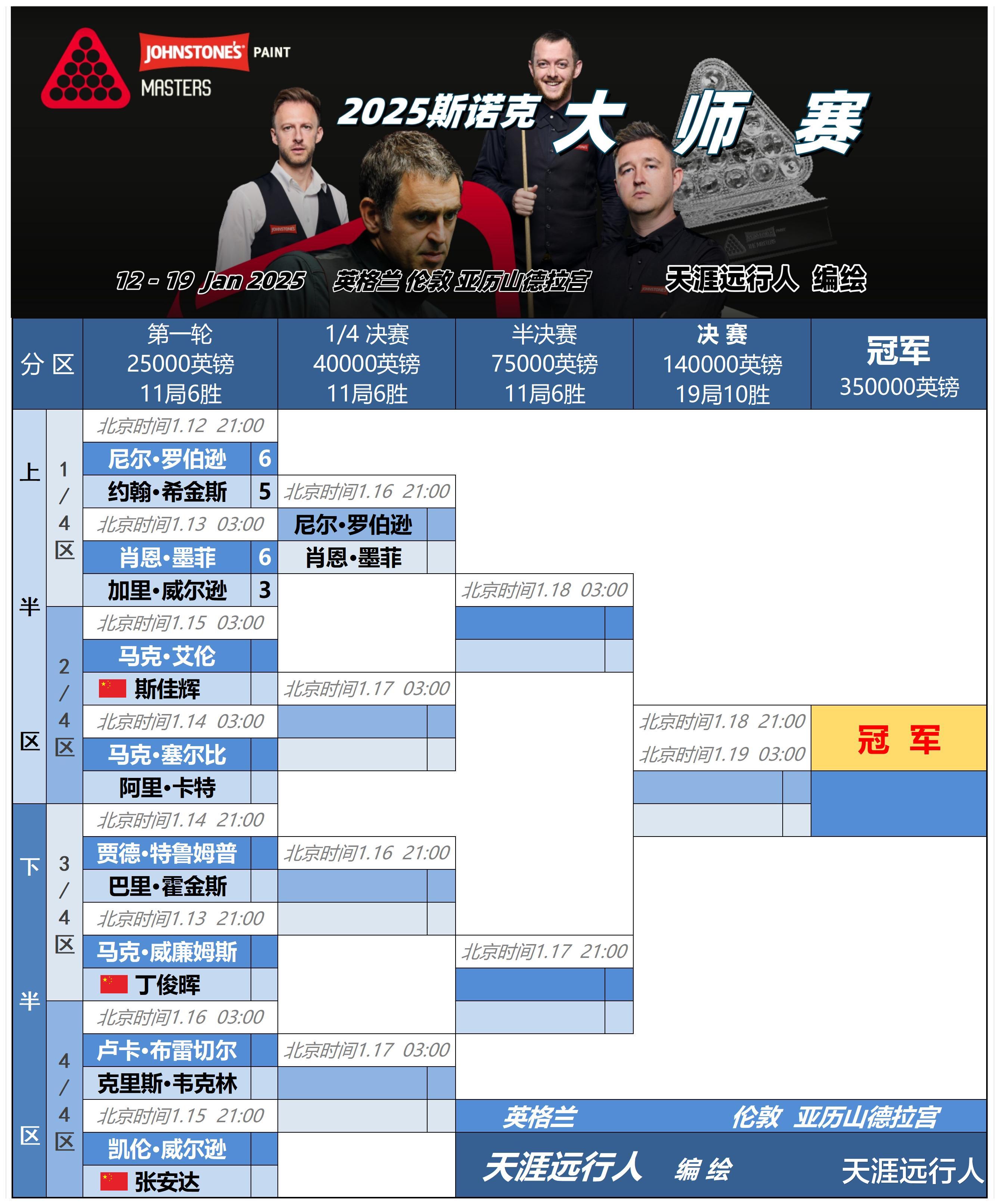 历届斯诺克大师赛冠亚军榜、决战全记录