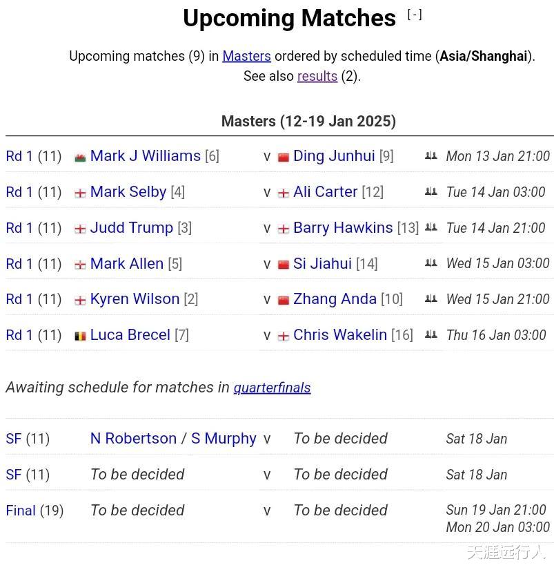 北京时间1月13日凌晨5时48分,斯诺克2025大师赛首个比赛日的两场角逐,在英格兰伦敦的亚历山德拉宫分出了高下,尼尔·罗伯逊遭希金斯五连鞭1-5落后,回敬五连鞭,完成绝地大逆转;肖恩·墨菲以6-3力压的哥加里·威尔逊,双双挺进八强,下一轮将进行直接对话。