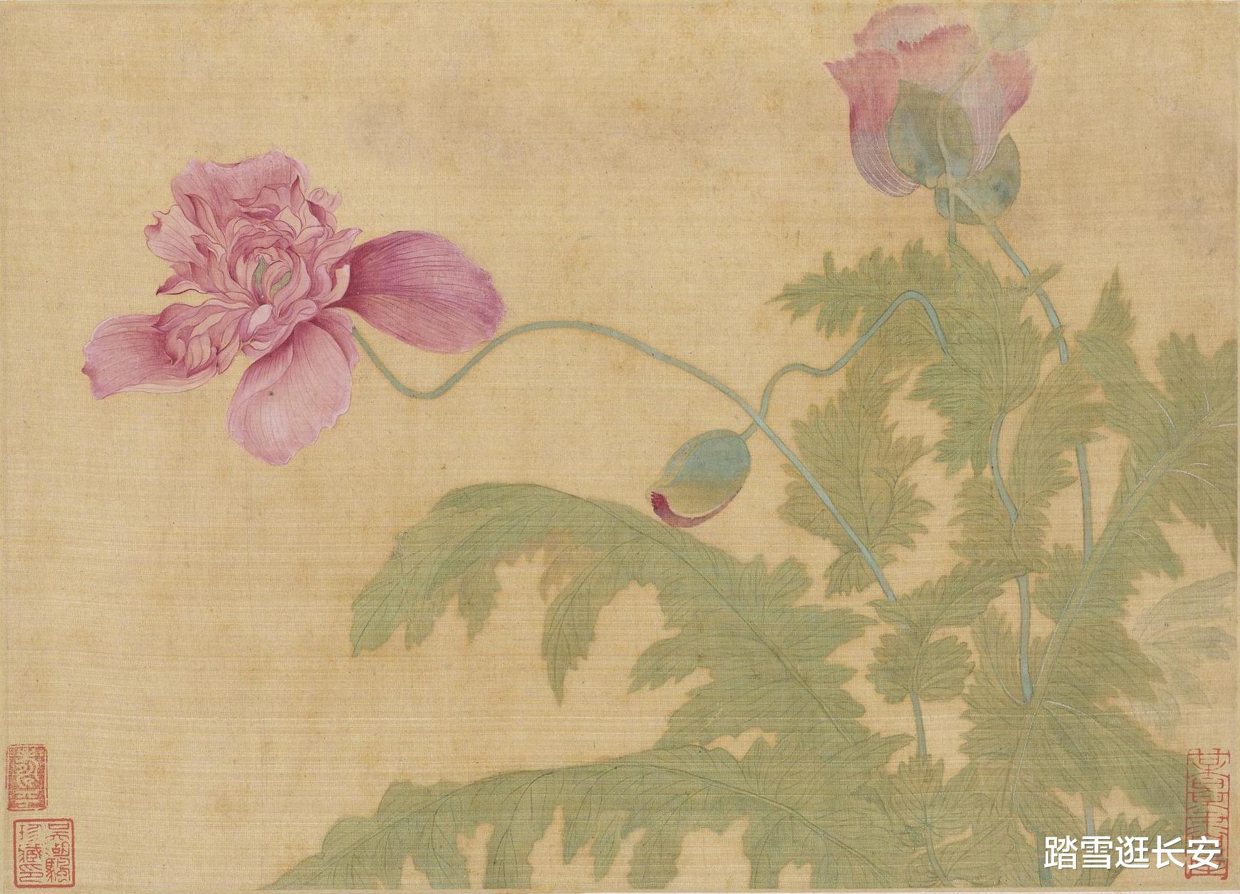 于是,他另辟蹊径,将目光转向了花卉画。他笔下的花朵,不仅形态逼真,更充满了灵动与生机。他的《花卉图册》堪称没骨法的巅峰之作,花瓣不用墨线勾勒,全凭色彩渲染,却能将花朵的娇艳与风姿表现得淋漓尽致。