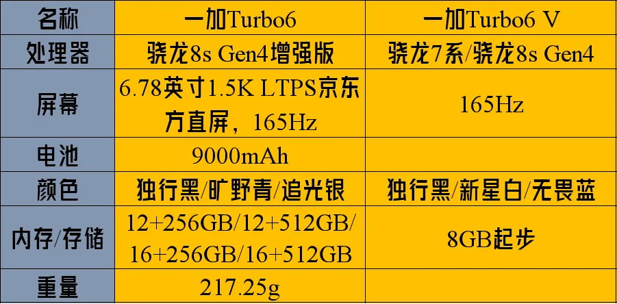 一加的新系列Turbo系列,现在确定直接从Turbo6开始,目前外观已经公布了还有一个版本是Turbo6V,处理器采用骁