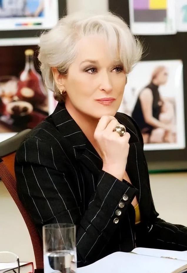 一头银发在聚光灯下璀璨生光,精致的眉眼,高挑优雅的身姿,加上岁月沉淀的充满智慧的眼神;