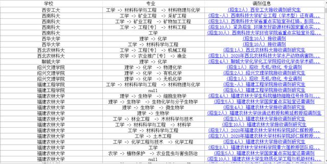 下图为各高校最新发布的调剂信息!