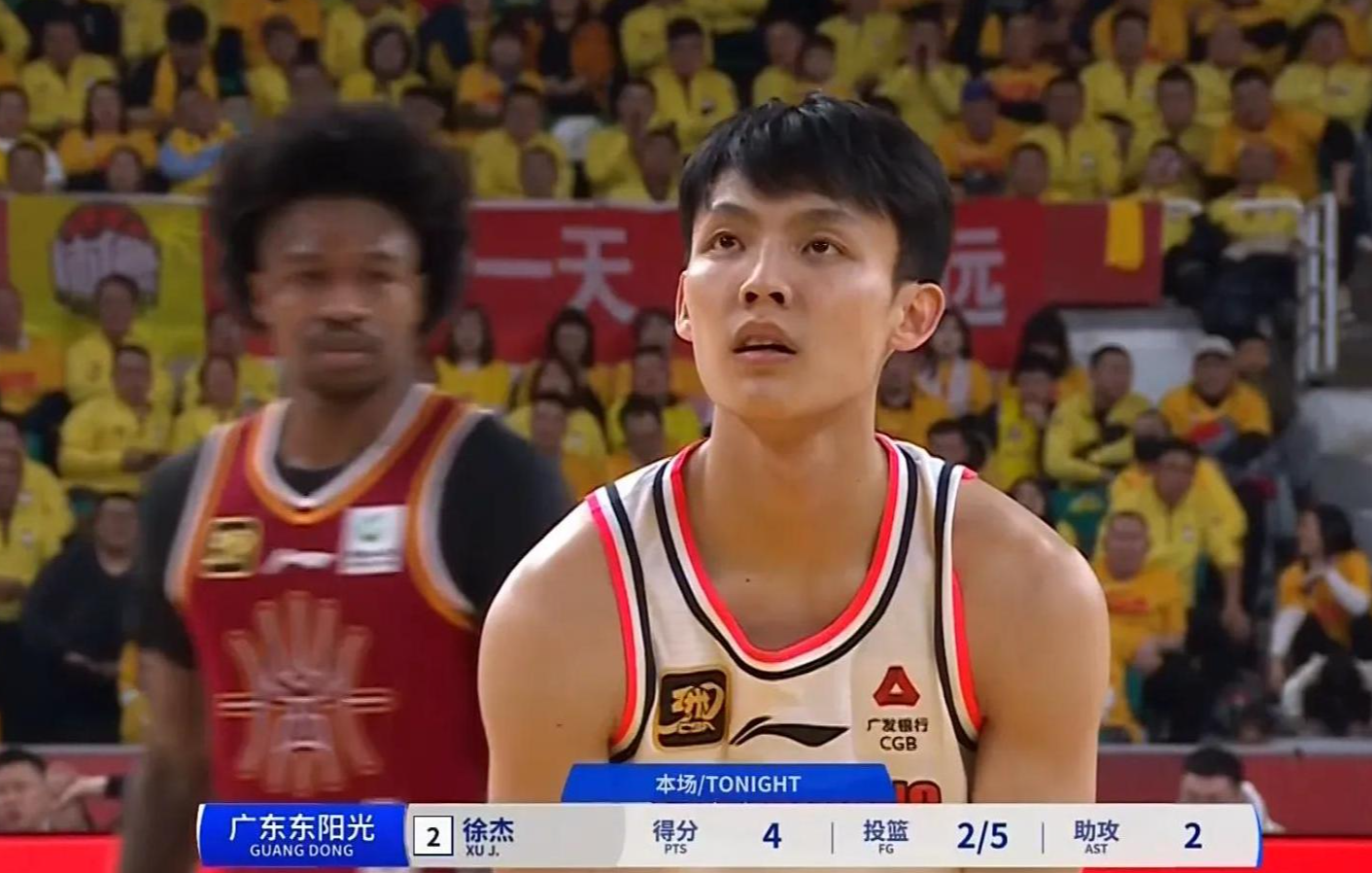 徐杰成为全队的进攻核心,先是通过外线中投,随后利用快攻造犯规,两罚全中,为球队追分立下了汗马功劳。