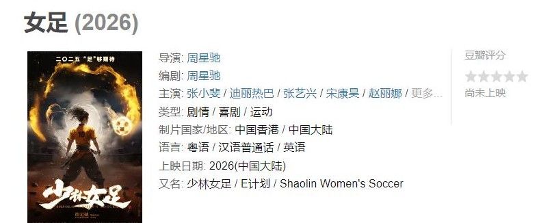 果然,最近传出周星驰新片《少林女足》的消息,虽然没官宣,但已经在某电影网站上有资料了,估计可信度不低,但看完剧本和阵容,真的是一言难尽。