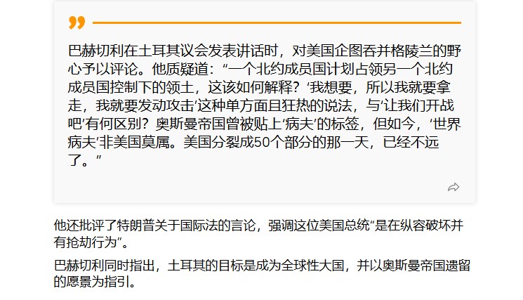 特朗普要豪夺格陵兰岛,土耳其就被骂美国是世界病夫,会分裂为50个部分,并重提奥斯曼土耳其帝国。