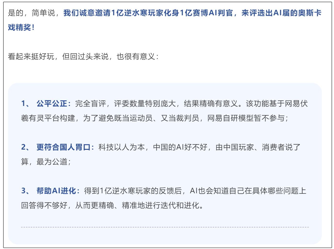 全球首个“AI届的奥斯卡戏精奖”开启投票,《逆水寒》手游还会在AI界搅起怎样的风云呢?
