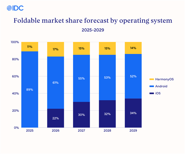 值得注意的是,这并不是第一家调研机构给出如此结论了,此前IDC也曾预测,苹果将凭借Phone Fold的强势入局,直接以超过22%的份额跻身市场前三。
