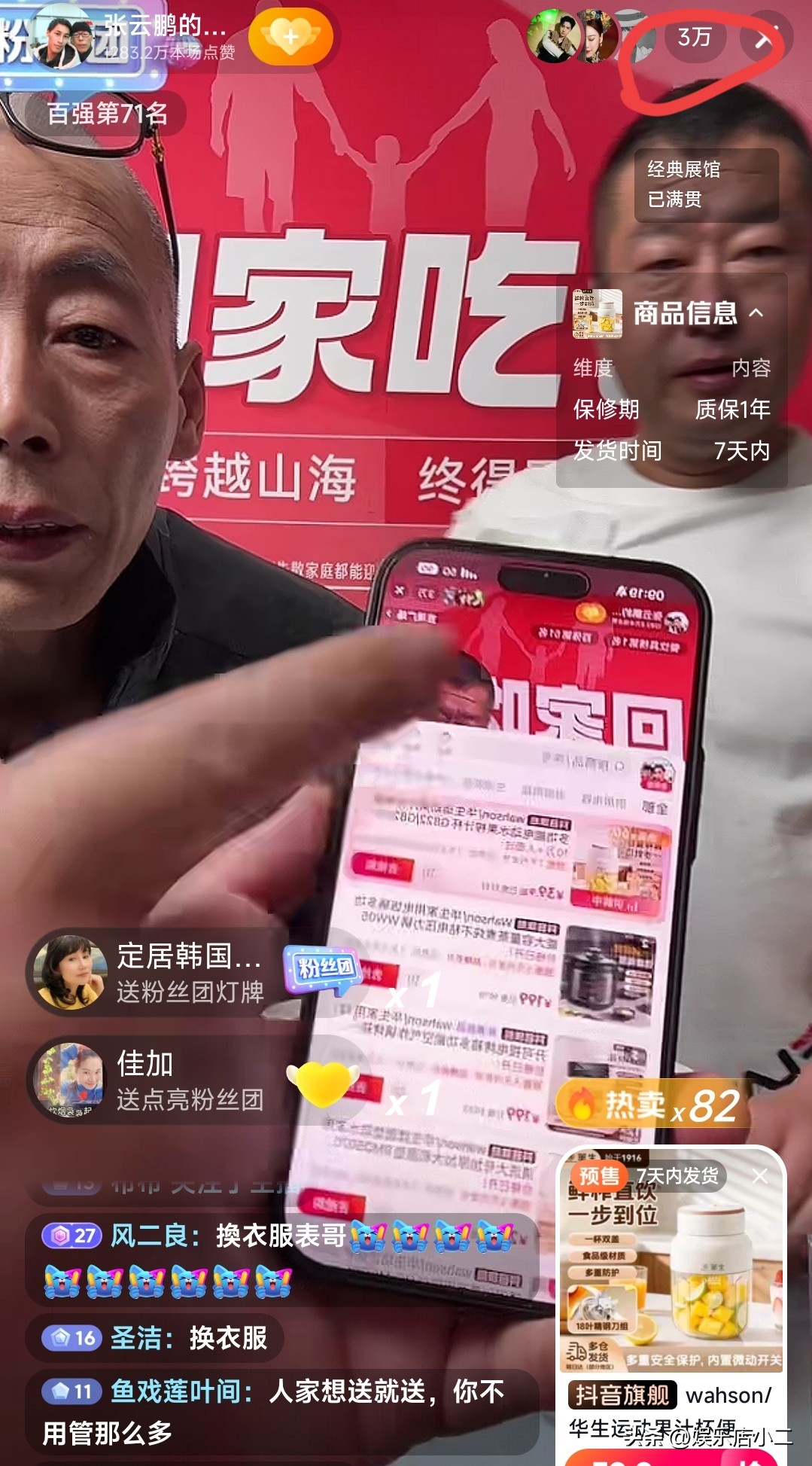 张云鹏父亲上午9点准时直播,粉丝很热情,人数最高达3万。