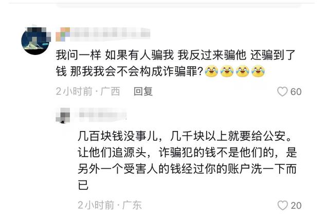 还有人也引起了思考,关于骗子骗了自己,如果自己骗回去,这种该怎么去定义呢?