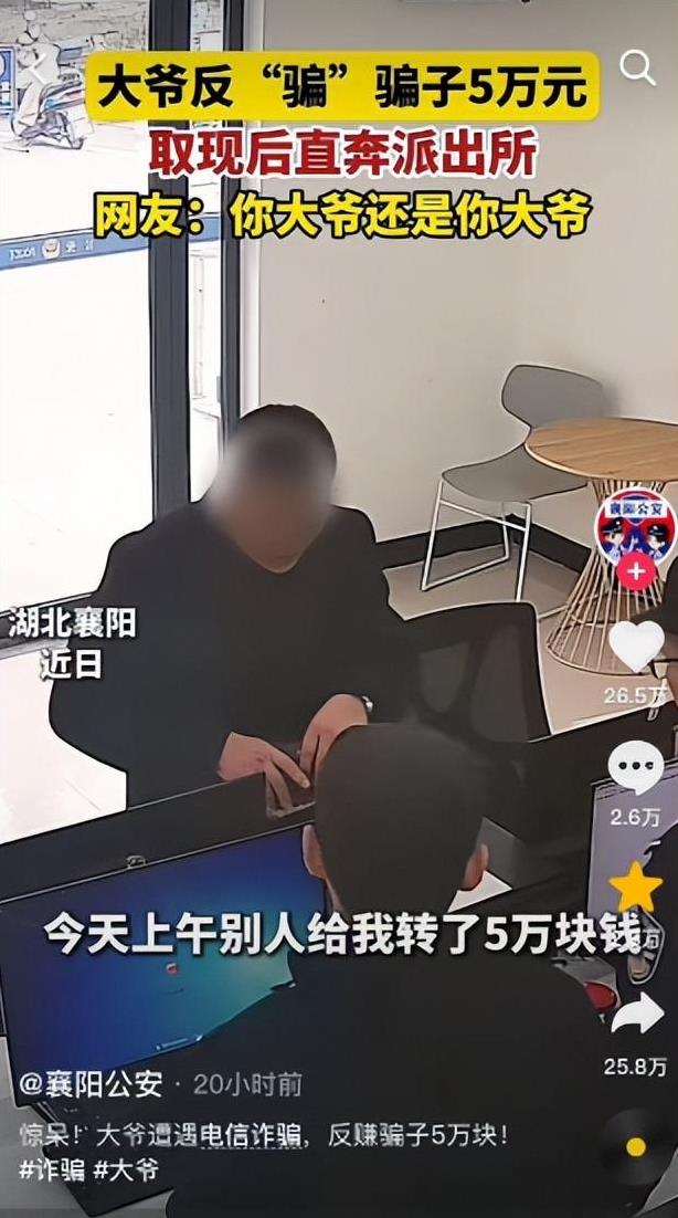 这位大爷不仅没被骗,甚至还赚了骗子五万块钱,阴差阳错之下还帮上一位受害人追回了被骗的钱财。