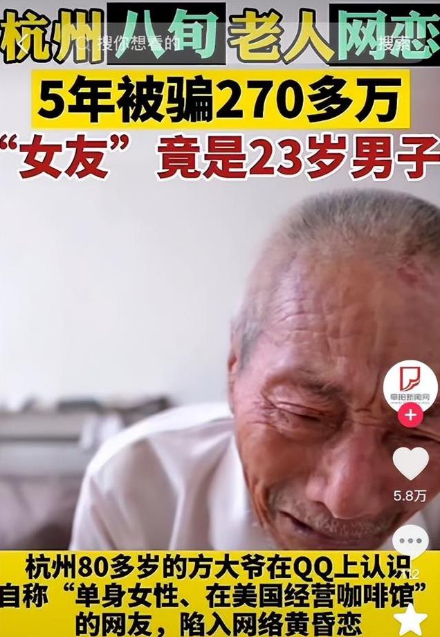 “七旬老太网恋被骗一百万”、“大爷深夜携带十八万现金见网友”、“大爷网恋对象是一男子假扮”、“大妈要贷款200万帮男友拍戏”……