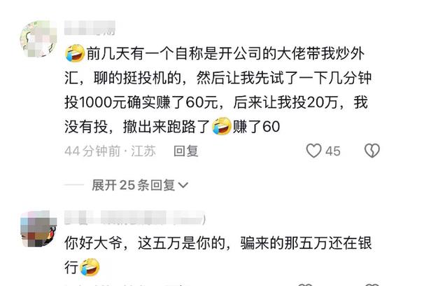 还有人表示有人忽悠自己炒股,反让自己赚了60,想想就开心!