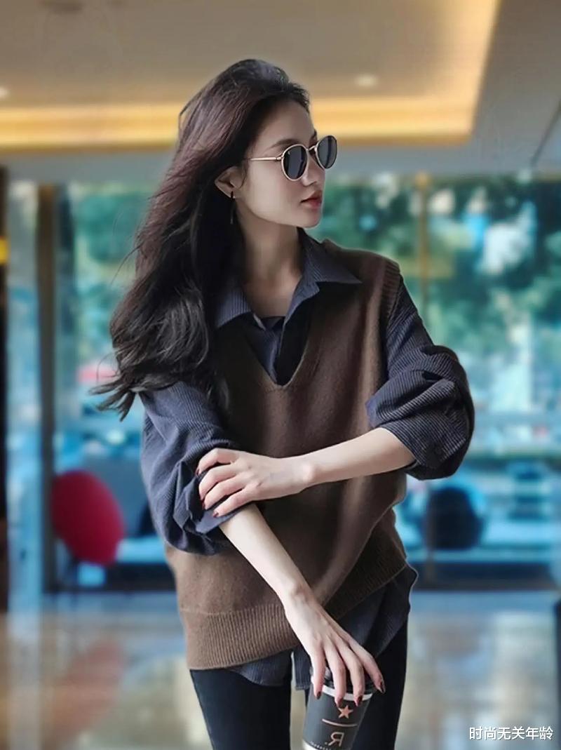盖过臀线的下摆更是打造层次感的关键,针织背心可以通过与它的色彩差异轻松的分割身材比例,更好的增添随性感。