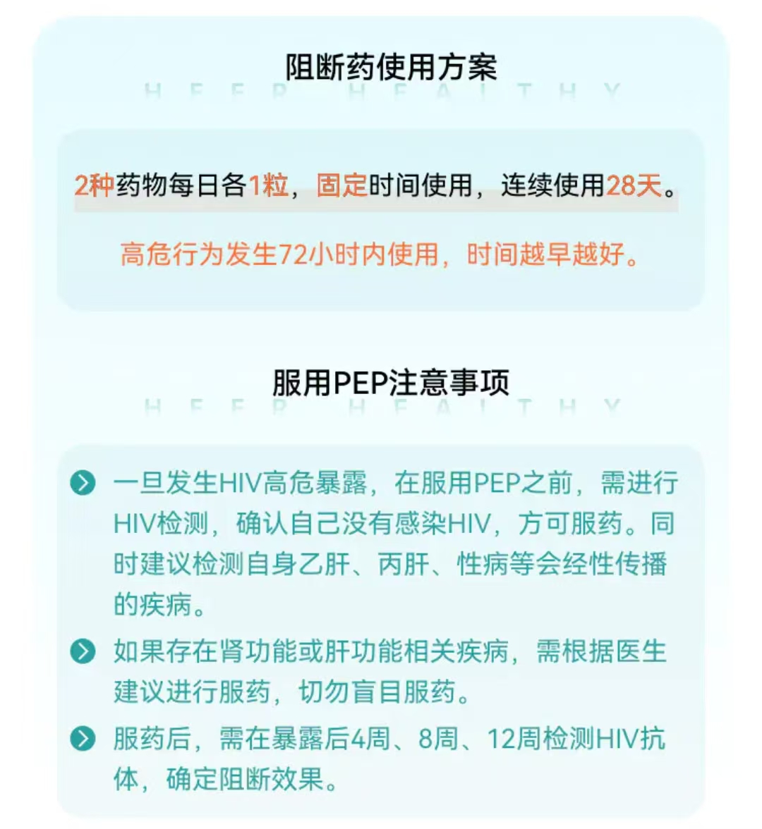 服用阻断药(PEP)时间越早越好,时间越早越好,时间越早越好(重要的话说三遍)。