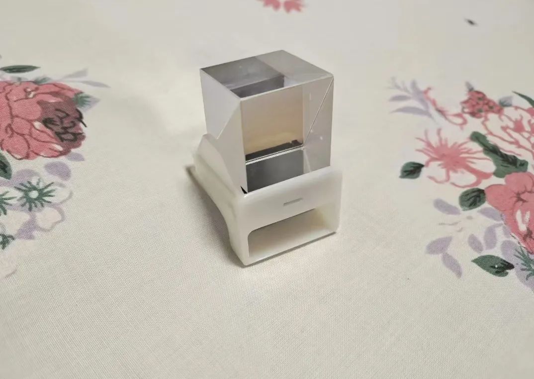 从侧面看,它的屏幕另有乾坤,其实是一个柱状体的透明棱镜,正面还有一个窄窄的电源指示灯。这让我想到了小米那款OLED透明电视,显像原理有没有相通的地方?