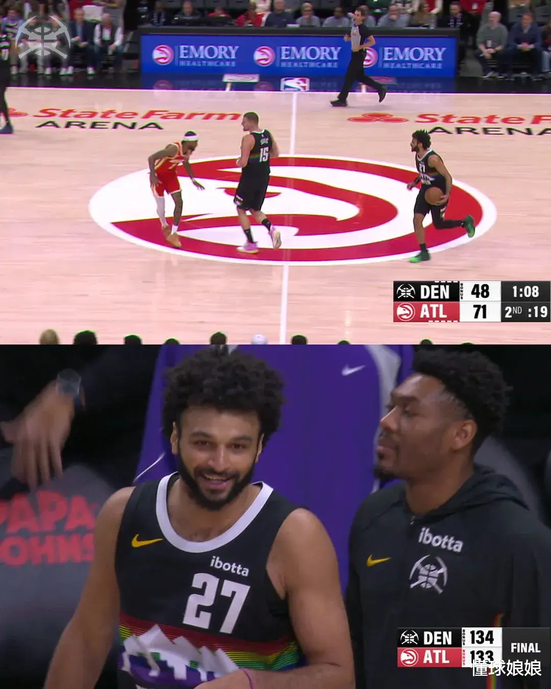 老鹰半场领先将近20分,所以本宫也是没想到掘金vs老鹰这比赛居然打到最后1秒才分出胜负,而且还是掘金134-133险胜。