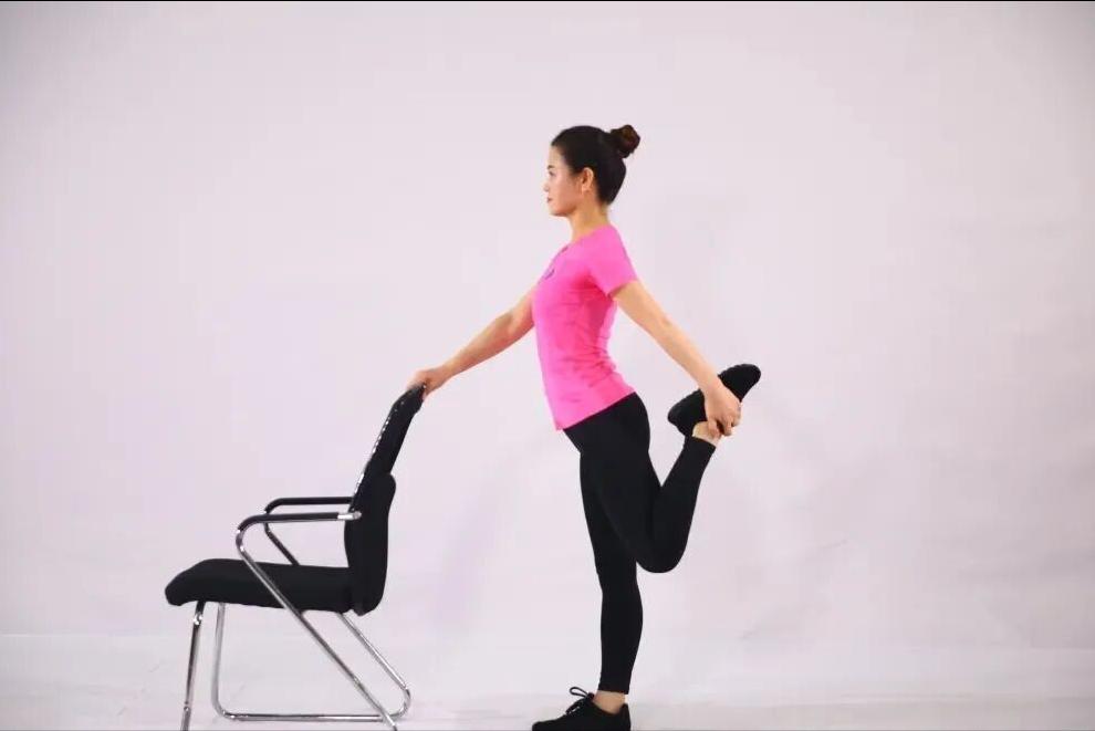 左右各30秒,放松股四头肌,减轻膝部压力。