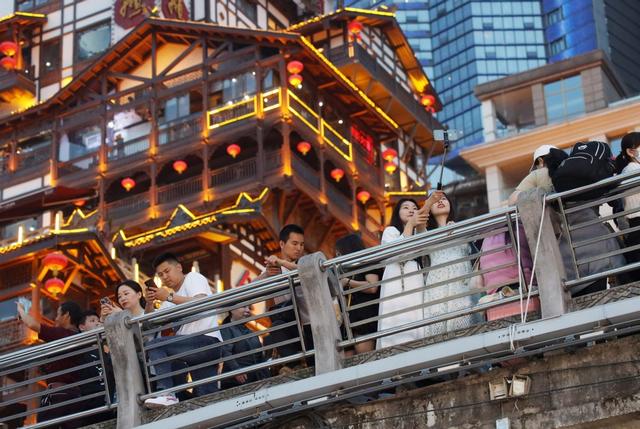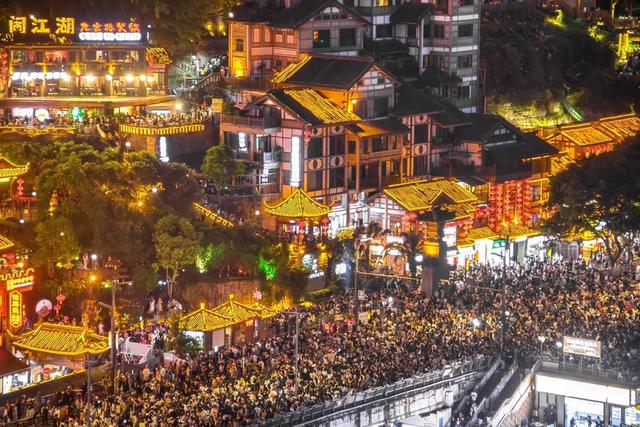 根据上观新闻资料,洪崖洞所在的渝中区迎来了规模浩大的游客高峰期。