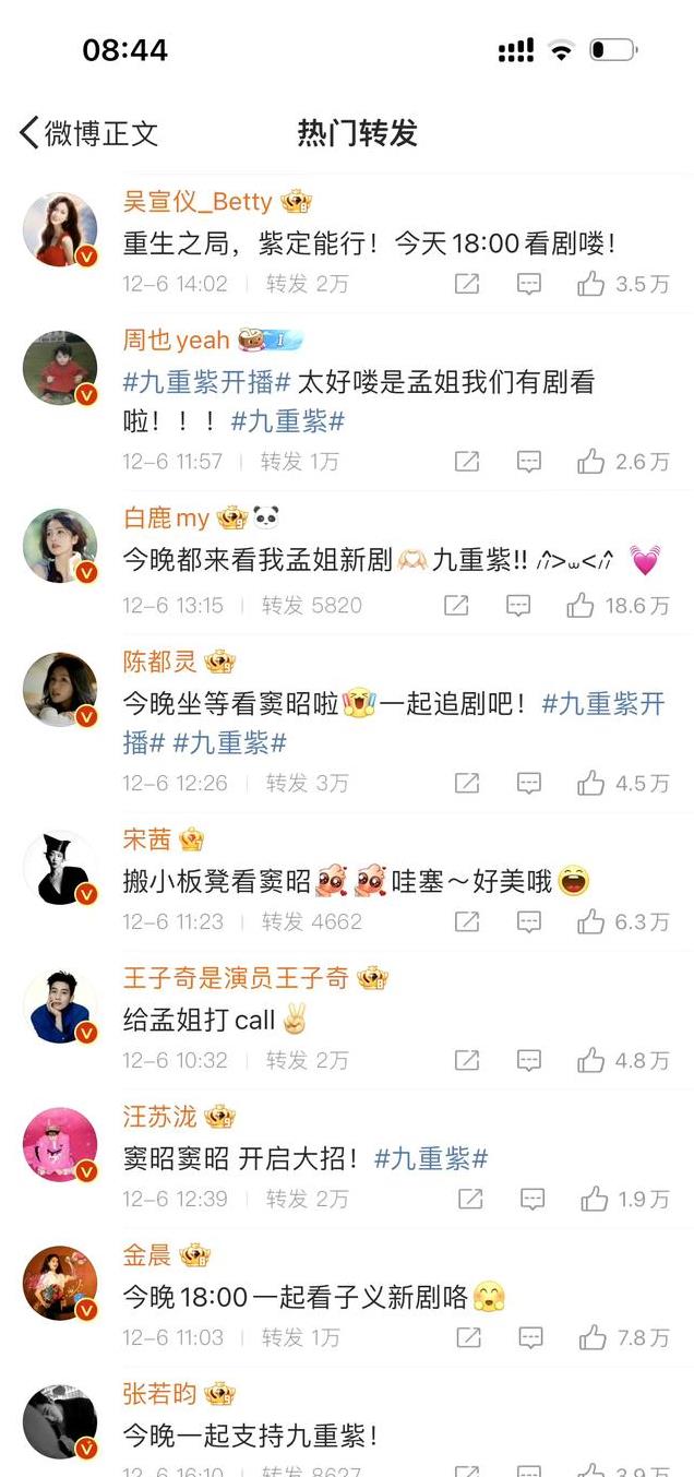 《九重紫》被网友调侃是躺平式开播,比起其他剧铺天盖地的宣传,这部剧真有点像那种默默被抬上来的感觉,但没想到播出的效果很如此的好,最近在扫楼的时候,制片人张萌的嘴角就没放下来过。