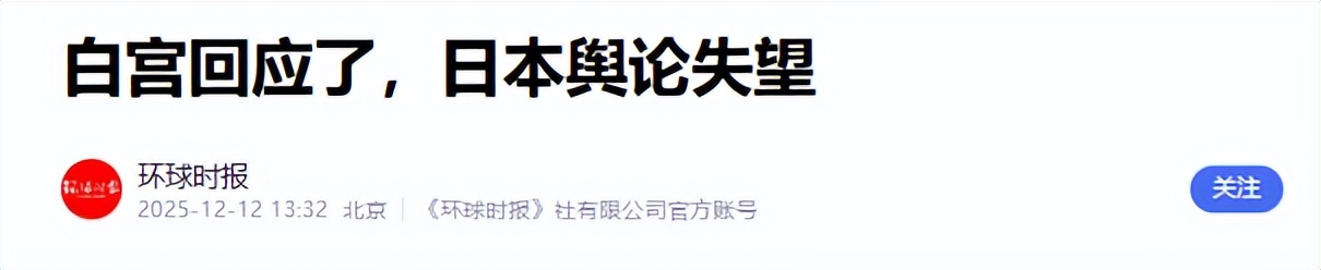 环球时报——2025年12月12日——白宫回应了,日本舆论失望