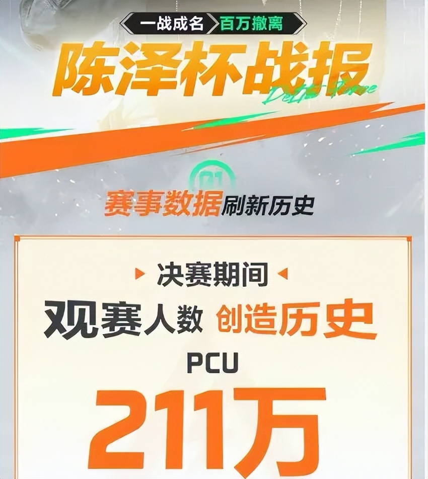 它的形式很灵活。例如最近搜打撤模式的主播比赛“陈泽杯”就收获了极高的热度,这场非官方的娱乐赛事,刷新了抖音历史上含亚运会在内的所有游戏赛事数据,创造了PCU211万的同时在线观看新高。