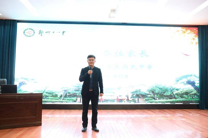 导读:心理学专家潘新凌老师走进郑州11中人民路校区为七年级全体家长带来了一场别具一格的心理学讲座。讲座由为民中学政教主任史培林主持,全体七年级家长参加。