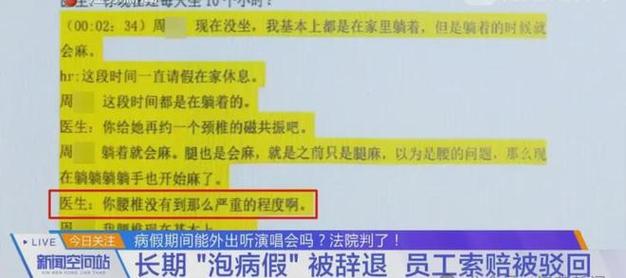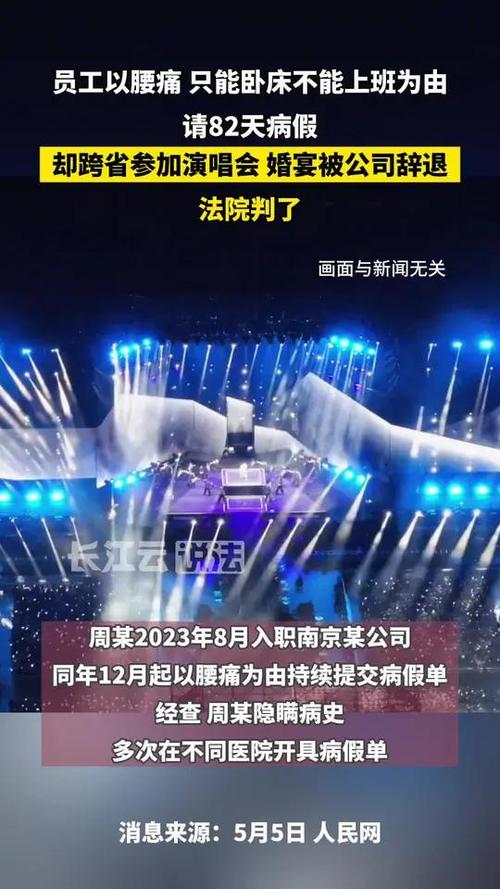 2024年3月17日,杭州某演唱会现场人声鼎沸。观众席上的周某举着荧光棒跟着音乐摇摆,完全不像一个"腰痛到只能卧床"的病人。此时,她已向公司请了65天病假,而这场演唱会只是她病假期间众多行程中的一站。