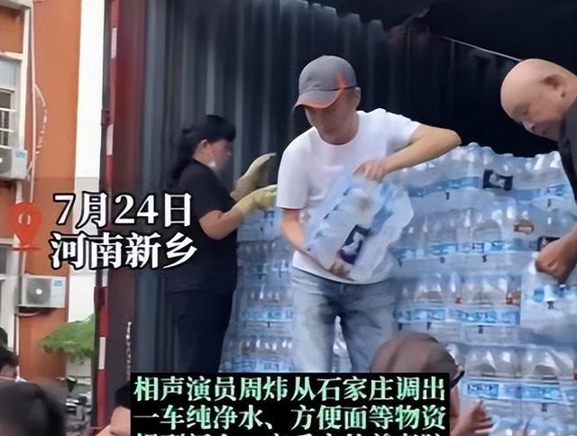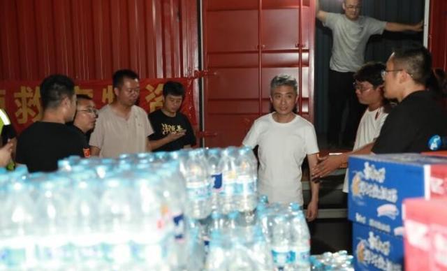 7 月 25 日,他带着满满一大车物资抵达河南新乡,并与志愿者们一起搬运物资,帮助受灾群众。